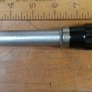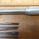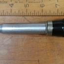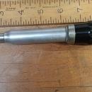 This is a nice clean, unique Spiral push drill marked MILLERS FALLS CO. GREENFIELD MASS. MADE IN U.S.A. 188A. It features 8 compartments on an rotary index in the handle that have a total of 5 different sized drills in them (from 3/32"-11/64"). In this style push drill the end cap turns to allow the numbered drill size to be removed or put back into the storage compartment. Each compartment is number from 1-8., and the end cap has a lock position, with no hole so the drill points don't fall out during use. Of the 5 different sizes of drills included with this push drill, all in very good used to new condition, all have the 4 notches that the 4 jaw chuck fits into on one end. The push drill is quite nice with about 95% of the nickel plating intact on the steel, the rest is very nicely polished aluminum finish, a few very minor scratches, a very good spring and spiral hardware, works great. Basically much like the North Brothers Yankee push drill in function, a few ounces heavier, and is 9.8" long overall. This push drill uses different bits than the Yankee style drill bits uses, as they have a different shank configuration and size. This one has a industrial plastic type fluted handle area the is surrounded by metal, so it's in very good condition, no cracks, nice finish. Works great, with a good spring and good working screw chuck. A Nice clean tool!