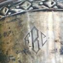 Sterling silver demitasse set of 6, made by Dominick & Haff in the early 1900's. Lenox porcelain liners with gold band trim inside and out. Unknown pattern name #792, though similar to "Louis XVI". Monogram "F-B-C" on cups and saucers. Cup with liner measures 2 1/8"h; saucer 3 1/2"d. No chips or cracks to the liners; only very minor dings to the Sterling, with light use scratches. Not cleaned, but will be happy to do so before shipping. Email if further photos are needed. Sold as is, and as a set. Extra matching pieces available separately, but can be combined for shipping. Just contact me before ordering. Inglenook Antiques...Established 1989.