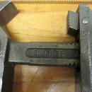 This is a nice clean combination wrench for either nut or pipe work. It has a very clear maker's mark and logo. The mark on the one side reads "BEMIS & CALL BILLINGS MADE IN U.S.A.". It measures 15.8" long overall. The condition of the wrench is good with a some minor dings and dents, mostly on the jaw edges, very clean, no rust noted, has a solid hardwood handle with two hairline cracks near the heavy steel furrule. The handle is protected from splitting any further with a steel furrule at each end. The wood has been tested and is still plenty strong/solid, fits very tightly. The handle has the design of the furrule and threaded end nut, keeps the handle hardwood from spliting, very solid hardwood. The jaw aligns nicely, and is very snug fitting. No damage noted, not bent, a good straight, useable combination wrench! This one has the longer threaded adjustment nut. We have observed 3 different sizes by Bemis & Call in the past, this adjustment nut is only 2.9" long, where the longest style is 3.5" long. A good looking collectible wrench overall!
