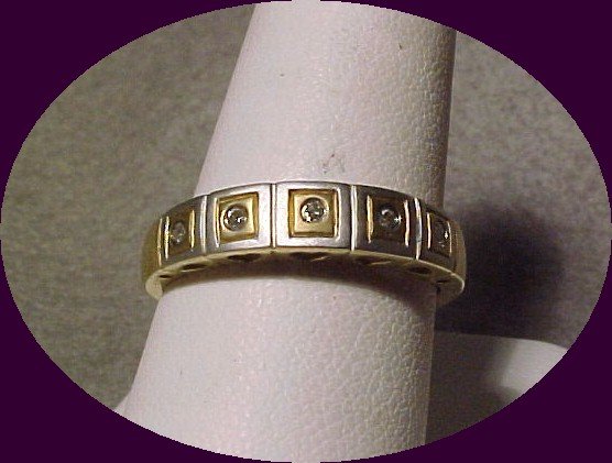 Modern 2 tone Gold Band Ring with 5 Diamonds