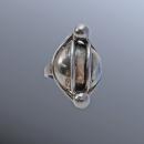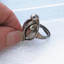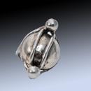 Modernist Napier Sterling Silver Ring Chunky Dome Rare Vintage Designer Statement Ring. Just don't know how to describe it. Anyway the main part is a large silver dome ( that is not hollow) with two balls on either end with paralell bars between the two ball. The ring is adjustable. Inside the band is marked "Napier Sterling". Other then the patina due to age the condition is excellent. The weight is 11.5 grams . The face of the ring is 1.25" long and .5 " wide and sticks up .25" from the band.