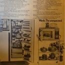 Montgomery Ward Appliances 1970 Ad. This two page black and white October 9 1970 ad states if you think the old days were good old days, you ought to check with someone who was there. Picture shows woman setting in rocker Crocheting, cat is at her feet. also shows Wards Dishwasher, Refrigerator Freezer, Electronic oven and Cart. Magazine tear sheet picture is taken through plastic and may show wrinkles or crookedness that is not in the ad. This original magazine tear sheet measures 10 inches wide by 13 1/2 inches tall.