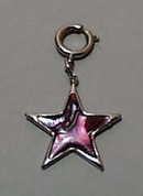 Moon and Star Jewelry Accessory. This is a silver tone with purple and pink enamel accessory most likely to be worn on a bracelet or key chain although could be worn on a chain also. It has an extra large clasp. Real different. Could hook on a button or zipper...lots of uses. In mint condition probably from the 1990's. Entire piece measures 1 1/4" long. Silver Tone Jewelry Accessory. This is a silver tone with purple and pink enamel Star jewelry accessory most likely to be worn on a bracelet or key chain. Could be worn as a pendant. Or on a zipper. Use your imagination !!! Very pretty. Extra large clasp. In mint condition. Has a solid silver tone back. Star measures 1" across. Entire piece measures 1 7/8" long.