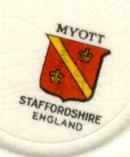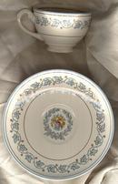 Myott Staffordshire Cup and Saucer. Elegance Pattern. Blue Ivy border and fruit basket in center of cup and saucer. Very good condition, no chips or cracks.
