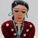 NATIVE AMERICAN NAVAJO DOLL SIGNED PEARL JOE RED VELVET DRESS BEADS HAND MADE