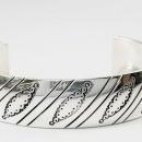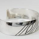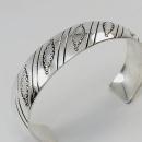 Native American Silver Cuff Bracelet Stamped Scalloped Ovals and Slashes It is stolid sterling silver that is 29 grams. The signature consists of marks that look like initials of E and an X with "sterling" stamped in the middle.