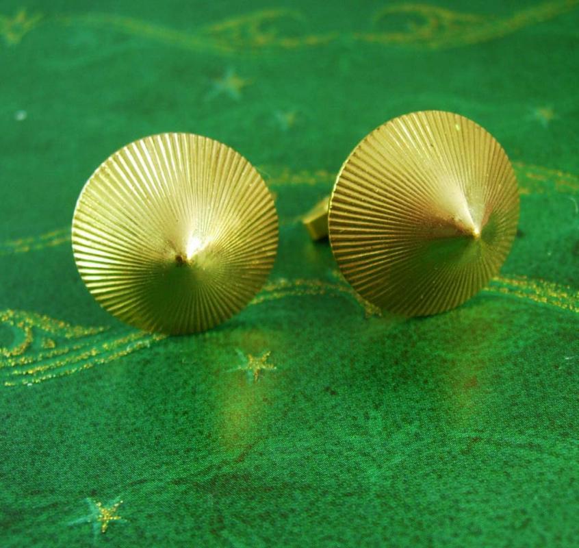 Shaped like the conical bra that Madonna wore in Blonde ambition, these are made in Germany and marked Germany Drg ( see below for more) . These are well made and have nice weight to them. What better way to give a gift than something unique and vintage. Here is something for the men or women that have everything! This would be a great idea because it is Vintage and not something you can buy everyday. OR perhaps just a perfect addition to a collection. They may have a little wear ( if any) but they sure have a lot of love that came with them when they were first bought. Boxed for gift giving; gift wrapped on request. ∆ Maker: Germany The D.R.G.M. signifies "Deutsches Reichsgebrauchsmuster" and is a design or use patent somewhat similar a "Registered" mark that provides an initial three years protection extendable for another three years to six maximum. D.R.G.M. registration was introduced and were first issued starting in 1891. However, if you are dating items you should hold in mind that even during Allied occupation up until 1949, registration procedures remained untouched and still used the D.R.G.M. registration documents, which of course explains why D.R.G.M. marks can be found on products actually manufactured up until 1952 as the registration itself was valid for three years. As from the end of October 1952, all registrations were definately marked with 'Deutsches Bundesgebrauchsmuster' (D.B.G.M.) or simply with 'Gebrauchsmuster' or 'Gebrauchsmusterschutz'. ∆ Material: gold plated ∆ Size: see photo ∆ Weight: ( based on other cufflinks in comparison) medium ∆ Condition: Because these are vintage and pre-worn they are not considered new from the factory. Please see photos for any wear or light surface scratches if any) .Sold as is and priced accordingly.. ∆ Lovely patina! These are part of a MASSIVE estate collection of cufflinks and jewelry so be sure to check out our other items here: https://www.etsy.com/shop/NeatstuffAntiques?section_id=all We don’t polish these previously owned well loved pieces so we can keep the original patina. We try and photograph all of the pieces next to a ruler so you can see the actual size. All jewelry sold as found. NOTE TO BUYER: We Do not offer engraving services of any sorts as we are not equipped to do so I’m sure your local jeweler would be happy to do so, sorry for any inconvenience thank you. All cufflinks ( unless otherwise specified) are considered costume jewelry. We use the descriptions of any stones from the manufacturers titles when they were first produced. When we refer to the stones as moonstone or jade or garnet, for example, we are using how the original manufacturer of the pieces used them. We cannot guarantee the authenticity of a stone in a costume piece of jewelry. All pieces have been worn at least one time unless otherwise specified. ***ATTENTION!*** Shipping rates for domestic and international delivery have skyrocketed! I have adjusted the shipping rates accordingly. If you wish to have another method of delivery (i.e. First Class International) PLEASE convo me before placing your order. My goal is to save both of us money on shipping. Jan4 2015