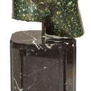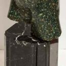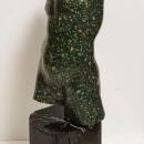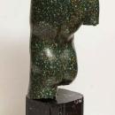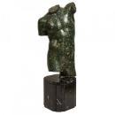 Our porphyry or serpentine veneered carved stone torso after the antique date from the late 19th to early 20th century. It mounts via bronze post into a black marble pedestal and turns smoothly. The sculpture easures 27 inches and the overall height is 37 inches.