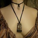 Nevermore Gothic raven necklace Black and leopard glaze Skeleton key charm