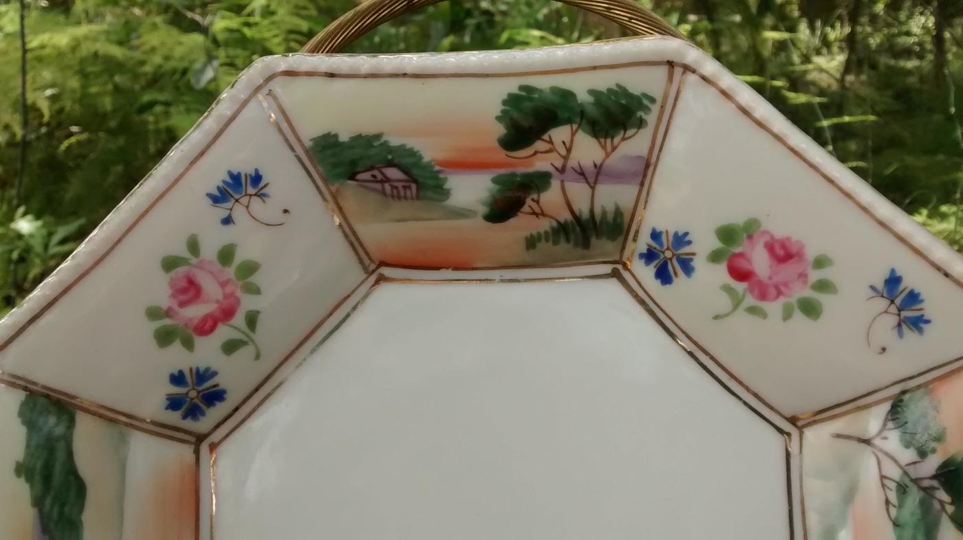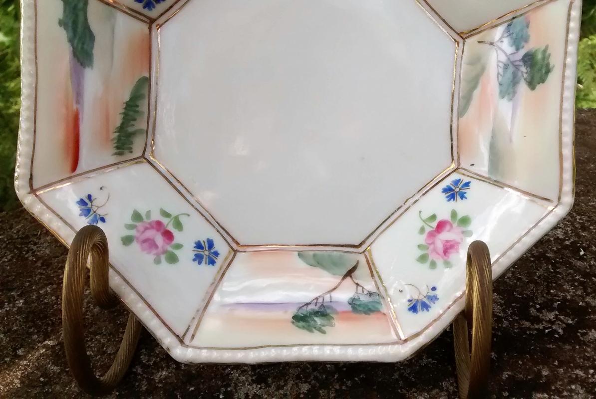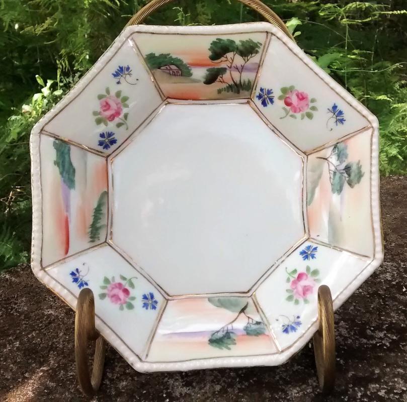 Antique Nippon Octagonal Dish HP Landscape/Floral 1891-1921