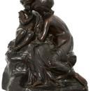 According to Sotheby's (see lot of their sale #8356 in New York in 2007), Pernot first exhibited La Grande Soeur in 1903. Pierre Kjellberg states that Thiébaut Freres cast this model in three sizes. The figures in that particular lot are similar in scale to our casting, but is truncated at the waist of the figures, and is said by Kjellberg to be the middle size of three sizes cast by Thiebaut. Thus, our casting is believed to be the largest of the sizes cast.