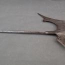 It is possible that the upper part of the shaft is the same age as the halberd and the lower part is a later addition, but why is the pole bent from age and use?