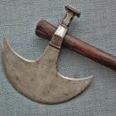 CONDITION: In its original condition, signs of age and usage are visible. The blade's cutting edge and the rear hammer bear nicks, indicating that the axe was used in combat.