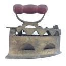 A heavyweight(3.9 lb) beautiful & rare antique Charcoal Iron, casted from BRASS(Not Iron) AND WILL NEVER RUST, still in superb condition. Handle made of hardwood. Circa 1910.