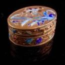 Antique Chinese Box - miniature enamel ring casket - Asian flowers Oriental lotus blossom keepsake jewelry case Vintage metal hinged