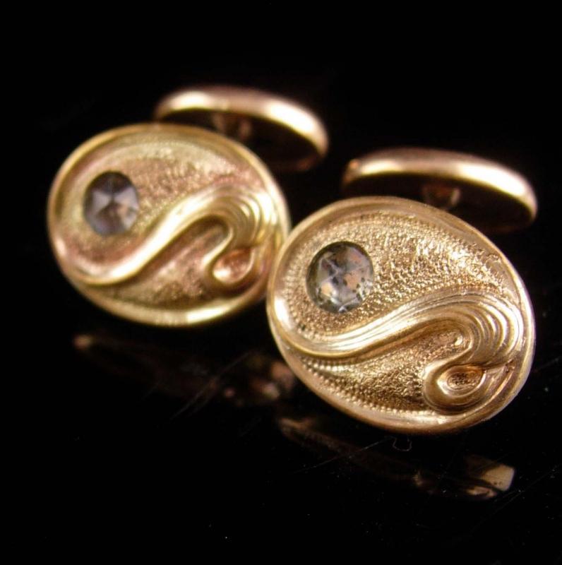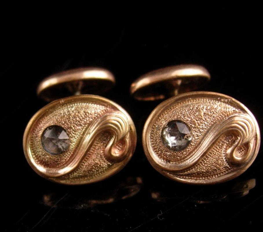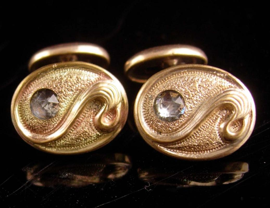 Antique cufflinks / victorian nouveau set / gold groom cufflinks / wedding estate jewelry / tuxedo cufflinks / anniversary gift for him