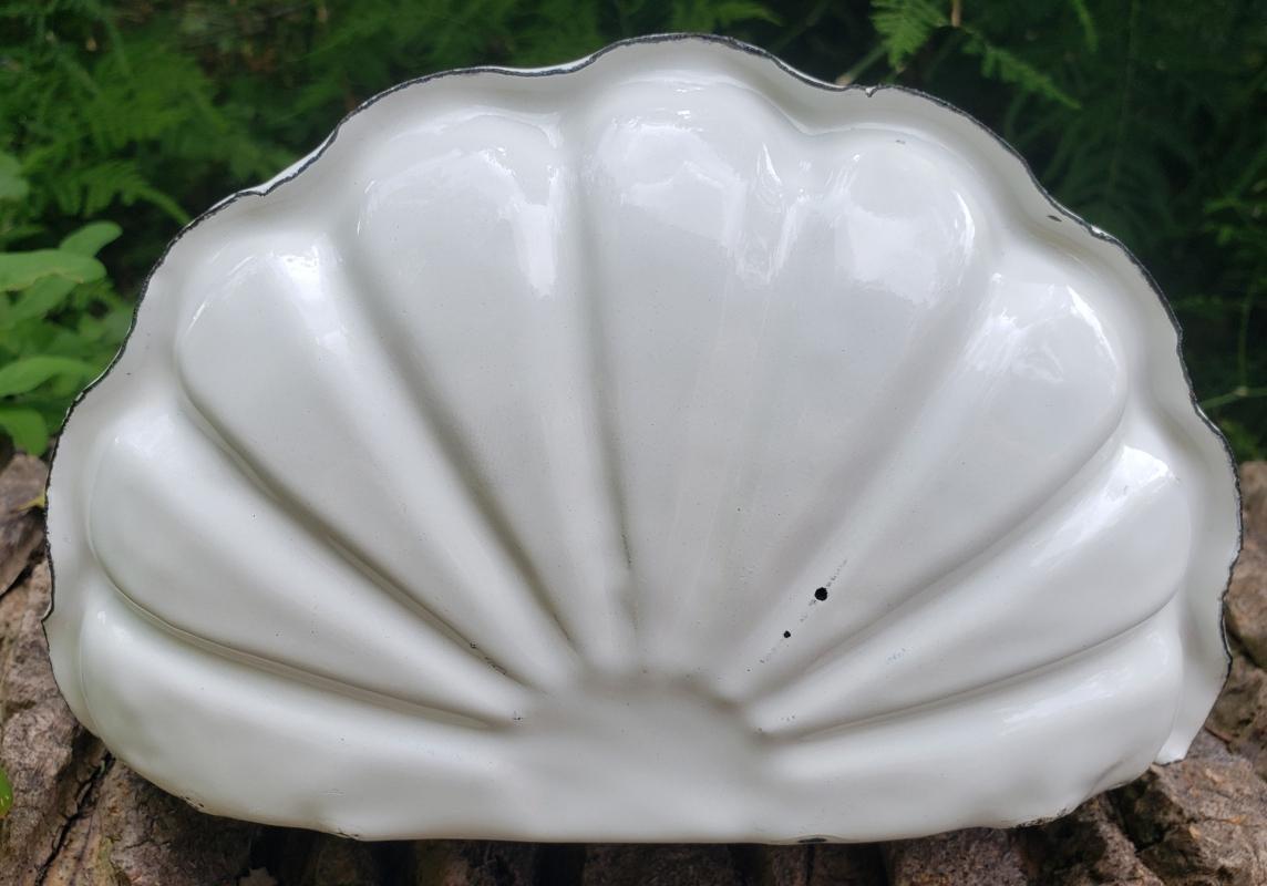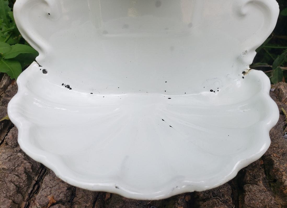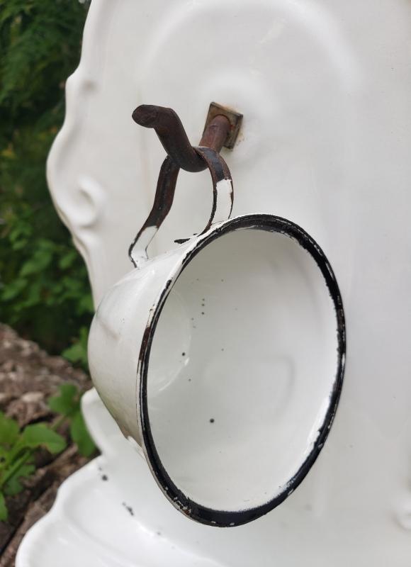 Antique Enamelware Soap Dish w/Cup Wall-Hung White/Black
