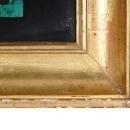 Our client's lovely micromosaic stone plaque depicting the Colosseum in Rome dating from the mid-nineteenth century and is possibly by Cesare Rocchegiani. The oval mosaic is set within a black slate ground decorated with geometric malachite stone inlay. Mounted in period giltwood frame measuring 18 by 21 3/8 inches.