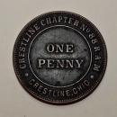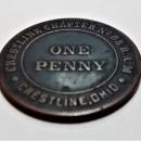 Antique bronze Masonic chapter penny token from the Crestline Ohio Chapter No. 88. Dates from the 1800s. Measures 1 1/8"d. Double sided with secret symbols. No major issues, very nice condition. Inglenook Antiques...Established 1989.