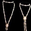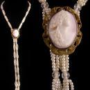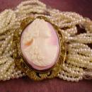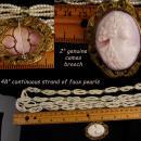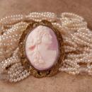 The Beautiful antique pale pink cameo brooch sets the stage for many stunning ways to wear it. Included is a 48 faux pearl necklace that can be worn differently ( see photos ) The cameo is hand carved and creates this amazing piece of jewelry. Much prettier than the photos, this will dazzle who ever looks at it.