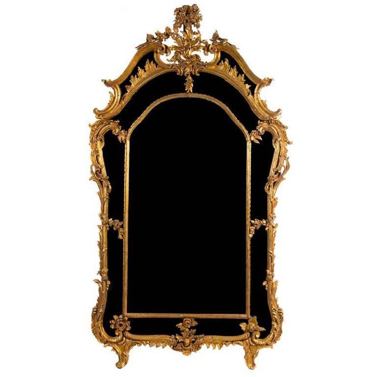 Antique Rococo Louis XV Chippendale Style Giltwood Mirror