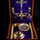 Antique sick call Box - Last rites case - religious candelabra - Vintage shrine wood box - catholic priest spiritual box
