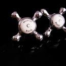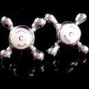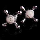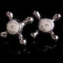 These genuine faucet handles were for a project we never finished. They were to be on hanging racks but now they need a new home. They still work for a faucet and are in pretty great shape less a small dot on one on the front. Heavy and well made these would be a great crafting project if you don't want to use them for a faucet.