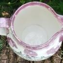 Antique Sunderland, or pink splash, luster jug/pitcher with "The Farmers Arms" crest on one side, verse on reverse. Poem features the phrase "God Speed the Plough". Made in England in the mid 1800s. No maker's mark. Measures 5 1/8"h. Nice condition with only some crazing and light wear to the luster, no chips or cracks. Sold as is. Inglenook Antiques...Established 1989.
