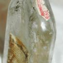 The bottom is with raised lettering in the glass says " Continental Distilling Corp" , The is some opalescence inside the glass from age. There is some tattering to the old label. It has the original twist cap.
