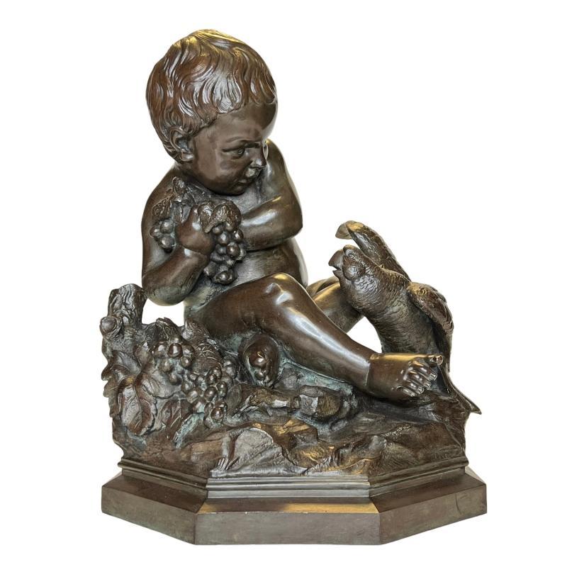 Our client's patinated bronze depicting a boy defending his grapes against a parrot after Antonio Giovanni Lanzirotti