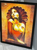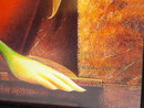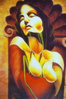 Octavio Ocampo Ecstasy of the Lilies Fine Art Print. It is framed behind glass in an plain black wooded frame. It measures 14" x 11.5" .