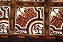 Old Mexican Folk Art Carved Wood & Spanish Tile Tray