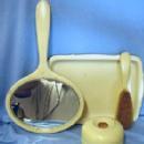 Nice set to include a dresser tray which measures 8 1/2" x 11 1/4" * Hair brush measures 8 3/4" * hair receiver 4 1/4" x 2 3/4" high, and the oval beveled mirror which measures 9" x 14 3/4" ... all in good condition. We accept VISA, MASTERCARD, DISCOVER, and AMERICAN EXPRESS payment via Paypal, to use this service click on below. Or you can pay with a money order or check to Greg Beckman c/o Antique Emporium, 565 Blue Star Drive, Traverse City, Michigan 49684 USA. We ship the same day payment is received if paid with a money order. If you make payment with a check, shipping will be delayed. Buyer pays S&H. To receive additional information or to order this item, please email Greg or Bonnie direct if you have any questions regarding this item or by telephone (231) 943-3658. Click to return to our HOME PAGE