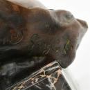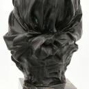 Our patinated bronze head of a gypsy woman, entitled Tests di Zingara, after Oronzo Gargiulo (Italian, 1869-1906) mounted on variegated black marble pedestal, measures 20 by 10 1/2 by 11 inches and is in good condition.