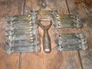 Set 15 Coors America's Fine Light Beer & one pressed bottle design Pabst Blue Ribbon bottle opener can popper bar utensils. Vaughan Chicago Illinois mark on Pabst piece, EMRO St Louis Missouri & EKCO Chicago marks on Coors tools.