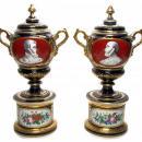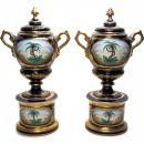 Pair Antique Figurative Painted Paris Porcelain Apothecary Urns with Lids