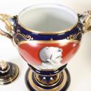 This pair of wonderful Paris porcelain apothecary ( pharmacy ) urns and covers feature the hand-painted portraits of two gentlemen on one side, likely Hippocrates and Galen, and serpents and palm trees on other side, on cobalt blue grounds with gilded decorations. Signed "Paul Lefebure, Rue de L'Odeon 13 Paris" for the pharmacy supplier. Each measures 19 inches (48 cm). Condition of each is very good. There are scratches, nicks and small losses and wear, consistent with age.