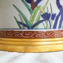 Our pair of antique porcelain vases in the Imari style with original lids measure 28 in (71 cm) tall, and feature later giltwood pedestals affixed to the undersides. Each in good condition.