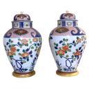 Pair Antique Meiji Japanese Imari Porcelain Lidded Vases