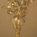 This pair of bronze sconces in the Louis XV style come in the form of tree branches with three electrified sockets and tambourine and flute with tied ribbons. Each measures approximately 26 inches tall and 12 inches across. Candelabra size bulbs, and in need of new wiring that we may install for an additional fee.