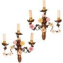 Pair of Mid-Century French Louis XV Style Porcelain and Tole Metal Sconces