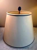 Pair of Lapis Lazuli Columns made into Lamps. handmade ecru colour Silk Shades with blue trim. topped with blue stone Finial.