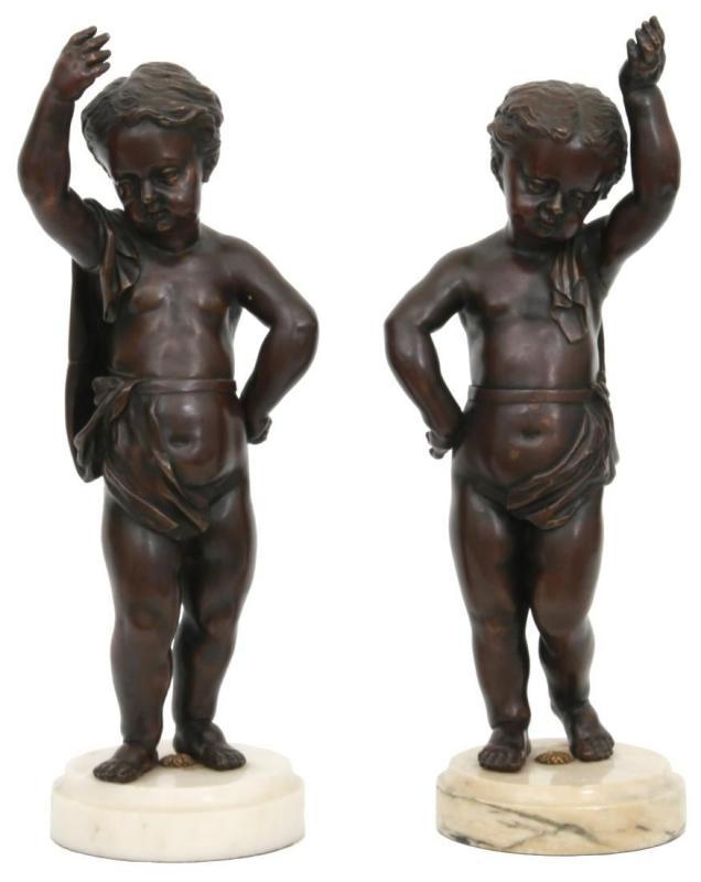 Pair Patinated Bronze Putti in Manner of Clodion
