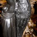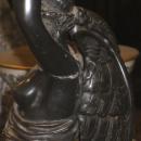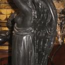 Our unique pair of faux bronze tazza in the French Empire style depict the goddess, Nike, crowned with Corinthian capital and arms supporting faux rouge marble bowls. Each 31 by 13.5 inches. There are restorations to a broken wing and arm, and chip losses to the pedestals as seen in our images. Material appears to be molded plastic or some type of composition.