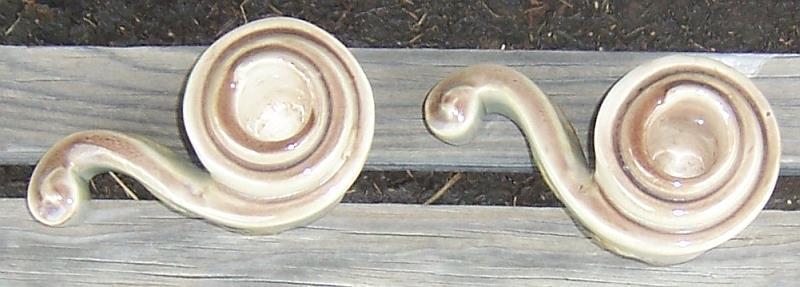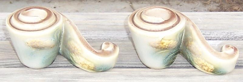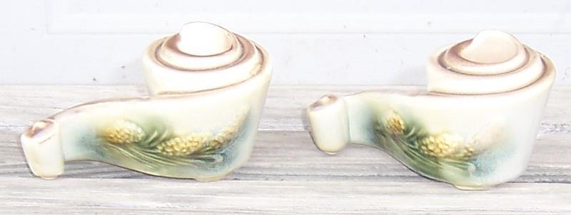 Vintage Hull Pottery Parchment and Pine Candleholders. Candle Holders are 4 1/2" long 2 1/2" high and 2 1/2" across. Good Condition.