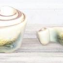 Parchment and Pine Candleholders Vintage Hull Pottery Rustic Decorative