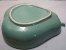 Pear shaped pottery Fruit & dip bowl. Wonderful green/dark dotted glaze that reminds me of pebbleford. It has a P in a shield mark on the bottom & Might be California Pottery company. This has one little unglazed spot on the tip of the pear stem, but I still consider it mint condition. Nice large divided serving dish, Great for fruit & dip! 12" x 10" x 3" deep