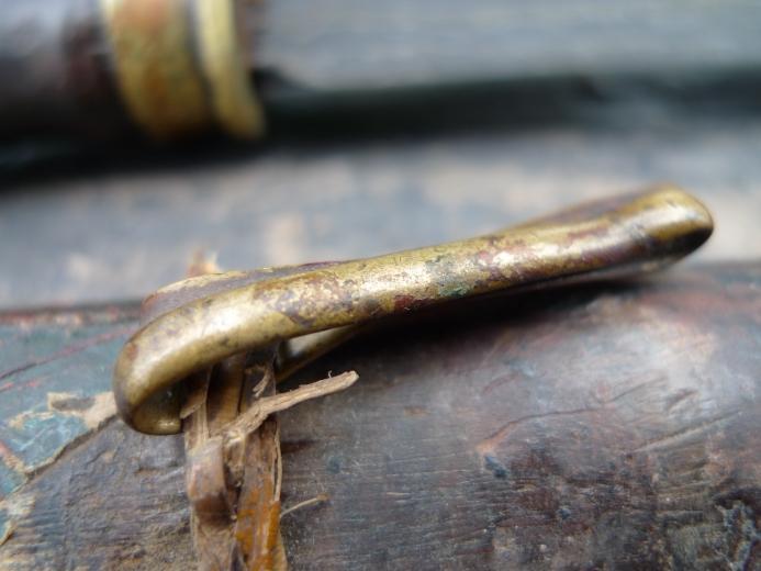 Or Best OfferWE 01322: An antique Parang Sumbawa from Lesser Sunda island, blade remains sharp and sturdy, decorated with pamor Janur Sinebit. The Pendongkok/Hilt Collar as well as the clip(behind scabbard) are all made of brass/bronze material.