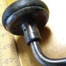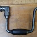 This is a nice clean older 10" swing, ratchet auger bit brace marked "SAMSON PEXTO MADE IN USA 8010" on the swing arms and "SAMSON PEXTO MADE IN USA PATENTED" on the chuck sleeve. Both PEXTO and SAMSON are trade names for PECK, STOW AND WILCOX CO. This brace is in very good working condition with the rosewood handles in very nice shape, a few dings and scratches, but look nice. There is some wear on the finish, some light pitting in a few areas, darkening of bare steel, but no rust, no damage or repairs. The is only minor wear on the chuck sleeve knurled area, threads are in great shape, movement is very smooth. The chuck jaws and jaw spring have been tested, and are in good working order. The chuck is designed to hold wood auger bits with the tapered square ends.