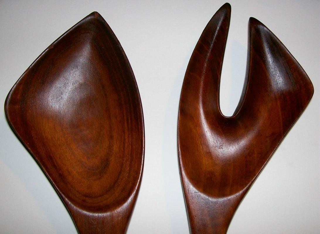 Vintage Polynesian Monkeypod Wood Salad Fork & Spoon 1950s-60s
